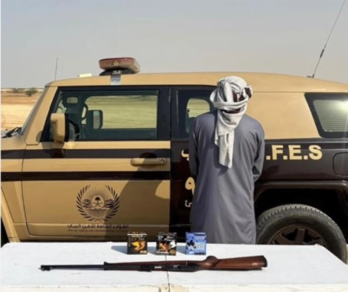 ضبطت القوات الخاصة للأمن البيئي مواطناً مخالفاً لنظام البيئة في منطقة مكة المكرمة لارتكابه مخالفة الشروع في الصيد دون ترخيص وبحوزته بندقية نارية و75 ذخيرة.