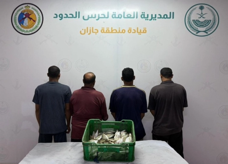 ضبطت الدوريات الساحلية لحرس الحدود في محافظة بيش بمنطقة جازان أربعة مقيمين من الجنسية المصرية مخالفين للائحة الأمن والسلامة لمزاولي الأنشطة البحرية في المناطق البحرية للمملكة العربية السعودية، وذلك لممارستهم الصيد دون تصريح في منطقة محظورة، وبحوزتهم أسماك مصادة، وتم اتخاذ الإجراءات النظامية بحقهم بالتنسيق مع الجهات المختصة.