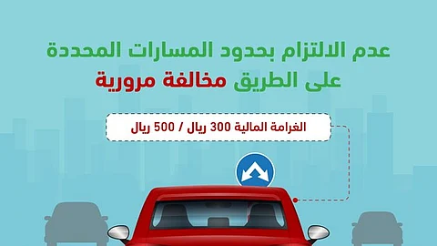 المرور السعودي: عدم الالتزام بالمسارات المحددة مخالفة مرورية وتصل الغرامة إلى 500 ريال
