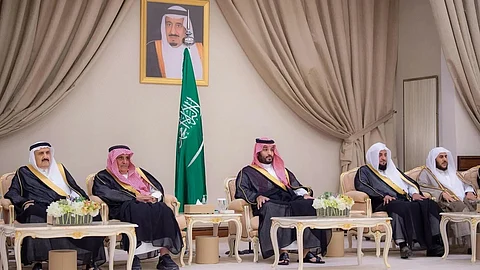 ولي العهد يستقبل أصحاب السمو الأمراء والفضيلة العلماء والمعالي وجموع المواطنين في قصر الخليج