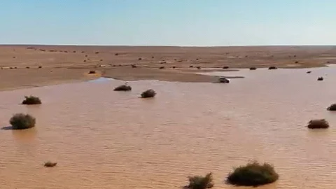 تشكلت بحيرة واسعة في منطقة حيرا فيحان غرب رفحاء صباح اليوم نتيجة الأمطار الغزيرة التي هطلت مساء أمس، ما جعل الموقع مقصدًا لعشاق الطبيعة ومحبي البر الذين توافدوا للاستمتاع بالأجواء المعتدلة والمناظر الخلابة.