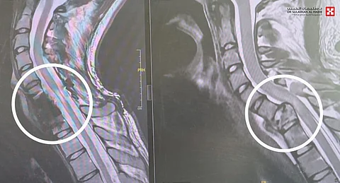 نجح فريق مستشفى الدكتور سليمان الحبيب بالقصيم في إنقاذ شاب تعرض لحادث مروري مروع كان مهدداً بالشلل الكامل، إذ أصيب بكسر مركب في الفقرة العنقية وانزلاق غضروفي حاد يضغط على النخاع الشوكي، ما أدى إلى شلل في الأطراف العلوية وأُسعف إلى الطوارئ وهو في حالة معقدة، ووُضع على التنفّس الاصطناعي مباشرة.