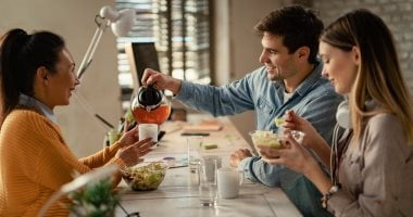 4 قواعد إتيكيت للفطار في الشغل، الحساب باللغة الإنجليزية وتجنب الأطعمة ذات الرائحة