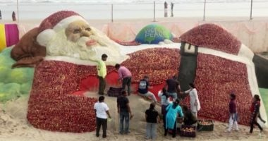 يبدع فنانون من مختلف أنحاء العالم في نحت بابا نويل للاحتفال بالعام الجديد، ومن بينهم الفنان الهندي سودارسان باتنايك الذي حقق شهرة بنحت تمثال عملاق من التفاح والرمل. استخدم نحو 1.5 طن من التفاح لصنع تمثال يصل طوله إلى نحو 18 متراً وعرضه نحو 13.7 متراً، وهو واقف أمام أحد الشواطئ وفق تقارير إعلامية.