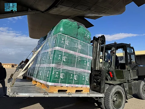 وتحمل الطائرة الإغاثية السعودية رقم 77 على متنها سلالًا غذائية وحقائب إيوائية تمهيدًا لنقلها إلى المتضررين من الشعب الفلسطيني الشقيق داخل قطاع غزة.