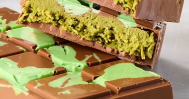 استخدم قالبين من شوكولاتة الحليب، وكوب كبير من الكنافة الناعمة، ونصف كوب من زبدة الفستق، وربع كوب من الطحينة اختياري.