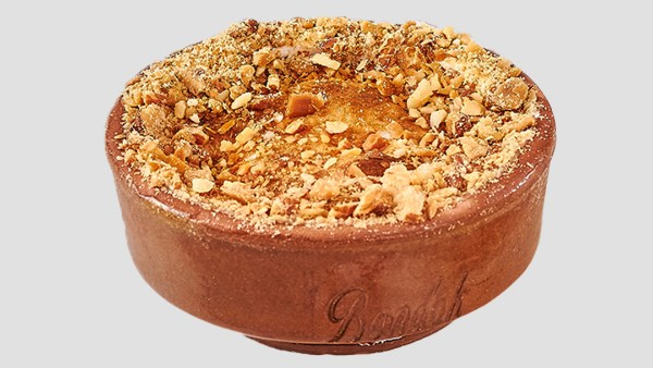 ضعي البندق والسوداني في الطاجن، ثم أضيفي عليهما الباف بيستري المحمصة والكريمة والقشطة، مع مراعاة توزيعها بالتساوي.