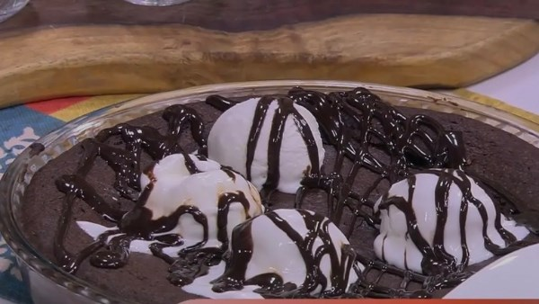 يخفق البيض والسكر والفانيليا حتى يصبح القوام كريمي. تخلط المكونات الجافة معاً، ثم تضاف تدريجيًا إلى المكونات السائلة. تضاف الزبدة المذابة ونقلّب الخليط. يوضع الخليط في قالب بايركس. يسوى في حمام مائي حتى تمام النضج. يُقدم مع صوص الشوكولاتة والآيس كريم.