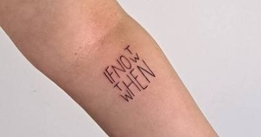 يعكس الوشم عبارة مكتوبة هي: “If not now then when” وتترجم إلى “إن لم يكن الآن، فمتى؟”، وقد تكون رسالة عن إحالة الأحلام أو الأهداف إلى المستقبل بشكل متكرر. لكنها تبقى في النهاية رسالة شخصية تعود لصاحب الوشم وحده، ولا يتضح معناها للآخرين إلا إذا اختار كشفها.