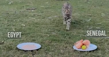 وتداولت لقطات من الفيديو تظهر القط وهو كأنه يخمن نتيجة المباراة لصالح مصر.