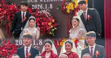 شهد حفل زفاف فريد في الصين جمع شقيقين توأمين بزواجهما من شقيقتين توأمتين.