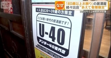 أقامت حانة يابانية من طراز إيزاكايا في شيبويا قاعدة تقصر دخولها على من تتراوح أعمارهم بين 20 و39 عامًا. وُضِعت أمام المدخل لافتة توضح طبيعة المكان وتُشير إلى أن جمهورها المستهدف هو الشباب.