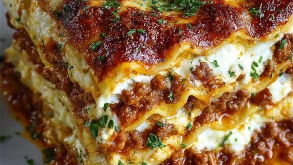 لازانيا كريمي باللحمة المفرومة والموزريلا