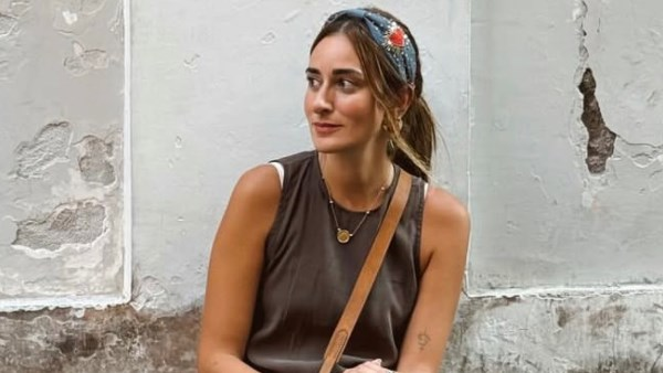 انتعلت حذاءً مسطحًا صيفيًا مع حقيبة يد كروس باللون الهاڤان، وتزينت بمجموعة من الإكسسوارات التي منحتها إطلالة متكاملة.