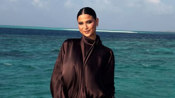 خطفت دينا داش الأنظار بإطلالتها على البحر، حيث ظهرت مرتدية فستانًا قصيرًا ذو أكمام طويلة، مصنوع من قماش الستان الخالي من النقوش والتطريز.