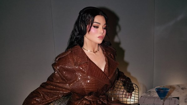 حضرت هيفاء وهبي عرض أزياء دار جورج شقرا وهي ترتدي فستانًا من تصميمه لمجموعته لخريف 2025، جاء باللون البني من خامة تشبه الشبك مبطنة لأعلى الركبة مع Cape طويل من خامة لامعة.