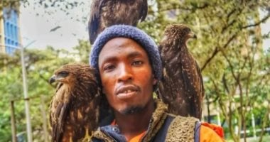 يتجول شاب في نيروبي يبلغ من العمر 27 عامًا وهو لا يعيش حياة عادية، ويحمل طيور جارحة على رأسه وكتفيه، ويقضي معظم وقته في رعايتها حتى تعود إلى البرية.