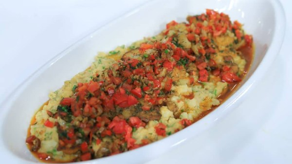 قدّم خليط السمك مع خليط البطاطس كطبق واحد متكامل.