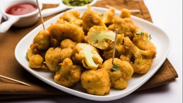 احرص على الحصول على قرمشة إضافية عبر تغطية الزهرات بالدقيق الجاف المبهر بالملح والكمون فور خروجها من العجينة السائلة وقبل وضعها في الزيت.