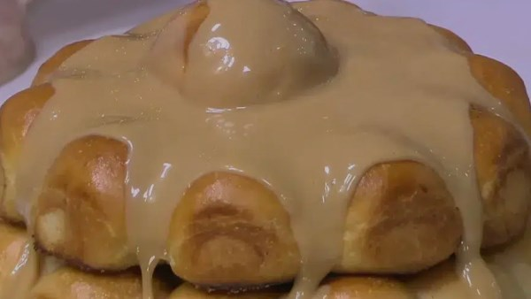 رصّ الأدوار طبقة فوق طبقة، ثم صب الحليب المكثف المغلي على الوجه.