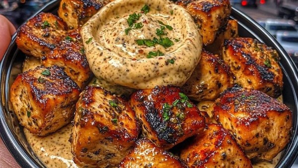 طبق جانبي للعزومات: مكعبات دجاج بزبدة وثوم مع صلصة فلفل كريمية