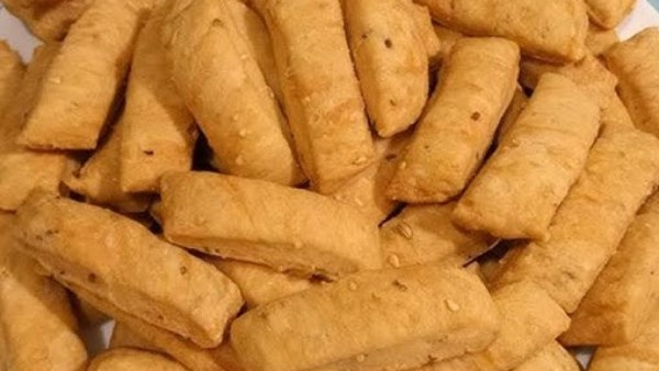 تشكل العجينة وتقطع شرائح، ويمكن أن تحشى بالعجوة. توضع في الفرن حتى تمام النضج.