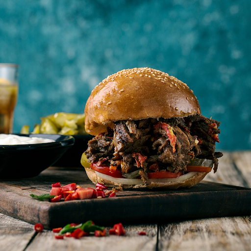 سمن، بصل أبيض مفروم ناعم، نصف كيلو لحمة شاورما، فلفل أسود، رشة جوزة الطيب، نصف ملعقة بهارات لحمة، ملعقة كبيرة بهارات شاورما، ملح، ربع كوب دبس رمان، ربع كوب خل، ربع كوب طحينة، بصل أحمر جوليان، سماق، بقدونس مفروم. للتقديم: عيش كايزر، سلطة طحينة.