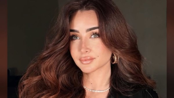 اعتمدت في المكياج ألواناً ناعمة تبرز جمال عينيها، مع اختيار أحمر شفاه بنيّاً ناعماً يعزز أنوثتها.
