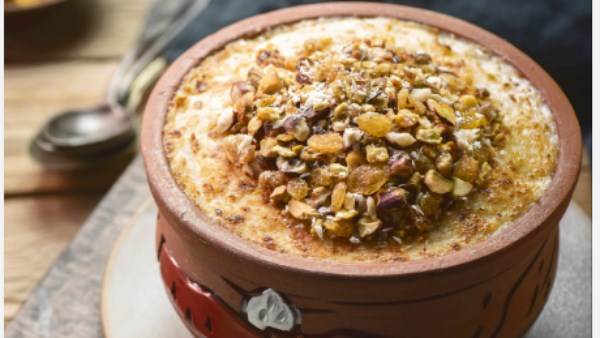 حضّري أم علي في البيت بمذاق لذيذ ومميز يجمع بين القشطة والعسل والتمر واللوز المحمص.
