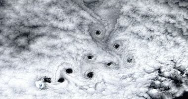 رصدت ناسا من الفضاء عشرة فراغات مظلمة ملتوية في السحب على ارتفاع يزيد عن ثلاثة كيلومترات فوق المحيط الهندي الجنوبي، على بُعد نحو 1,500 كيلومتر شمال القارة القطبية الجنوبية.