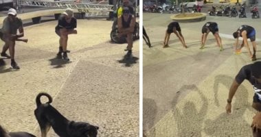 ضحك العداؤون في البرازيل بعدما اقتحم كلب جلسة الإحماء وبدأ يقلد حركاتهم بشكل مفاجئ.