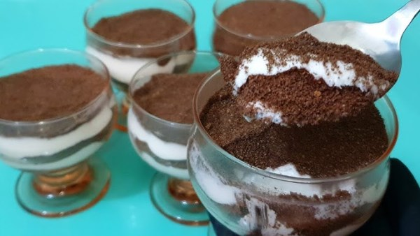 2 كوب بسكويت، نصف كوب لوز مطحون، كوب قشطة، كوب حليب، كوب كريم شانتيه بودرة، نصف كوب حليب مكثف.