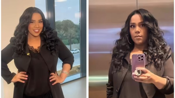ارتدت قميصًا أنيقًا باللون البينك ونسقت معه بنطالًا أسود أظهر جمالها ورشاقتها.