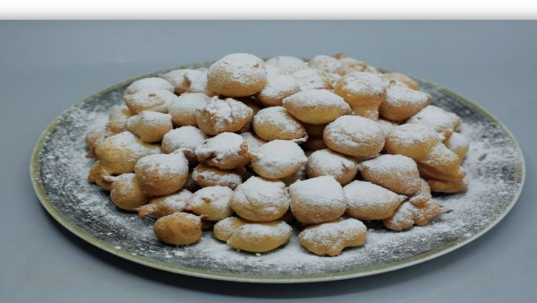 كوب دقيق، ملعقتان صغيرتان بيكنج بودر، ربع ملعقة صغيرة ملح، ربع كوب لبن، ملعقة كبيرة عصير ليمون، بيضة واحدة، ثلاث حبات موز مهروسة ومصفاة، زيت للقلي، وسكر بودرة للتزيين.