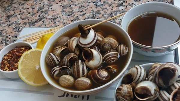 تُقصد بها القواقع أو الحلزون البري، تُنظف جيدًا ثم تُطهى في مرق غني بالتوابل والأعشاب، ويُؤكل بالملعقة أو يُشفط من القوقعة أو بالخلة، ويُعد طبقًا ساخنًا مناسبًا للتدفئة خصوصًا في الأيام الباردة.