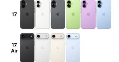 سيتوفر آيفون 17 AIR بأربعة خيارات كلاسيكية وهي الأسود، الأبيض، الكريمي، والأزرق الفاتح.