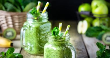 يحتوي العصير الأخضر على مزيج غني بالفيتامينات والمعادن الأساسية، يساهم في تنقية الجسم والحفاظ على نضارة الوجه. يحضر من حفنة سبانخ طازجة، ربع كوب خيار، تفاحة خضراء، مع قليل من الزنجبيل، وتُخلط المكونات جيداً في الخلاط.