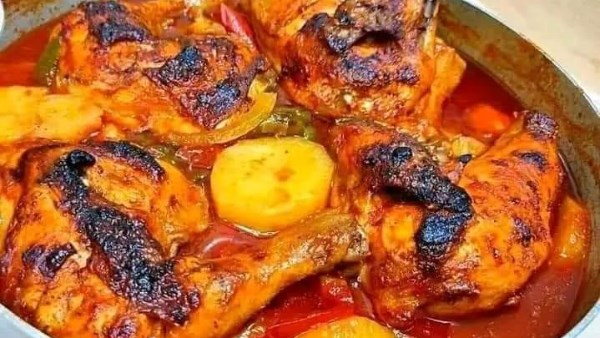 قومي بتجهيز المقادير التالية: كيلو بطاطس، حبتين بصل، طماطم، ثوم، فرخة متوسطة الحجم، ملح وفلفل أسود وبهارات، فلفل أخضر، مرقة دجاج.