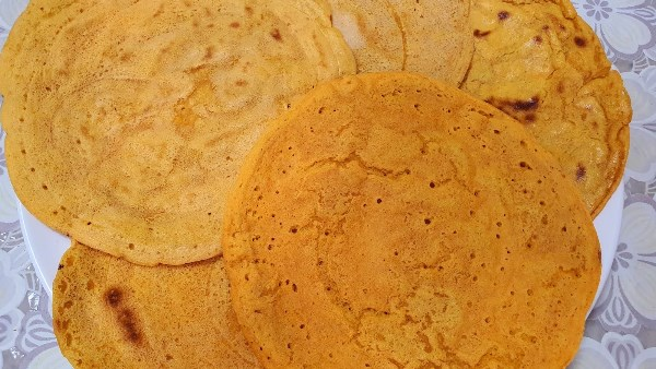 سخن مقلاة على نار متوسطة وادهن سطحها بقليل من الزيت، ثم اسكب ملعقتين من الخليط في المقلاة واتركيه لمدة دقيقتين حتى يتحول لونه إلى الذهبي، ثم اقلبيه على الجهة الأخرى واخرجيه من المقلاة.