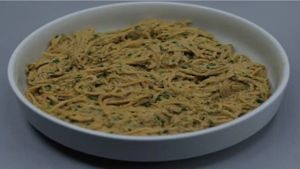 تتوفر لديك مقادير أساسية تمنح طبقك مذاقًا فريدًا: مكرونة سباجيتي مسلوقة، سبانخ، جبنة قريش، ملح وفلفل، ثوم، سماق، عصير ليمون، وزبدة.