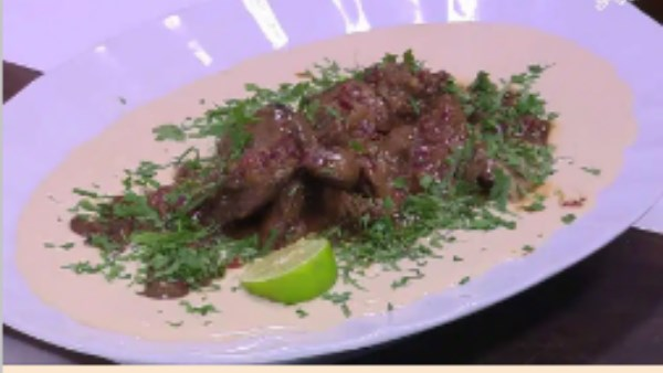 تُقدَّم مع الطحينة وبقدونس مفروم.