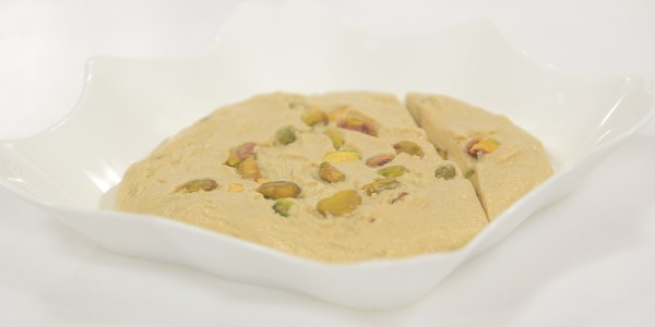 ابدئي بجمع المقادير التالية: 2 كوب سكر بودر، 2 كوب لبن بودر، 2 كوب طحينة، 1 ملعقة صغيرة فانيليا، وفول سوداني محمص.