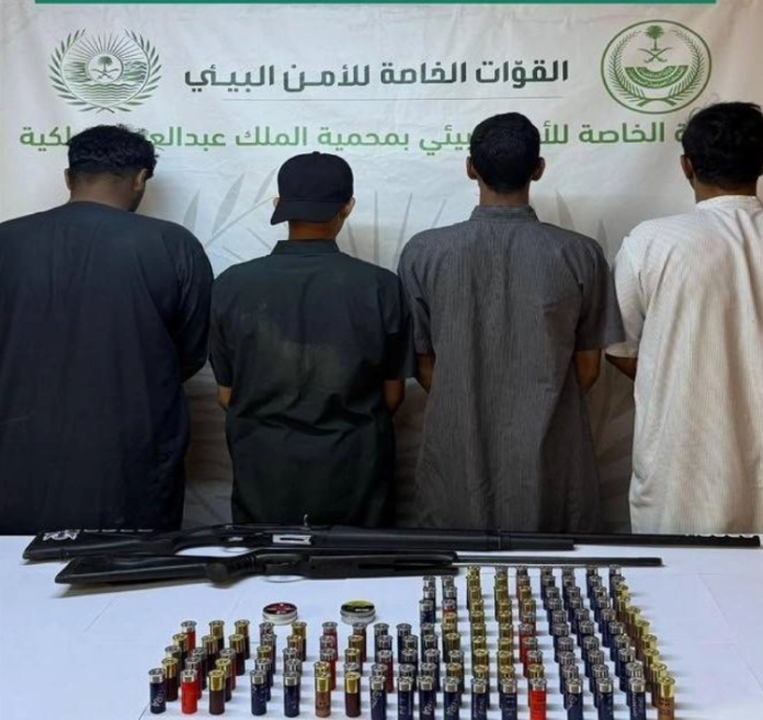 نفذت القوات الخاصة للأمن البيئي ضبط أربعة مواطنين مخالفين لنظام البيئة لارتكابهم مخالفة الشروع في الصيد دون ترخيص في محمية الملك عبدالعزيز الملكية، بحوزتهم بندقية شوزن وبندقية هوائية و632 ذخيرة منوعة، وتم تطبيق الإجراءات النظامية بحقهم.