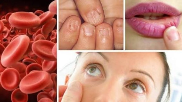 وتظهر مع نقص الحديد علامات تدل على نقص الأكسجين في الأنسجة، ومنها شحوب البشرة وضيق التنفس وخفقان القلب والدوخة والصداع، إضافة إلى أظافر هشة ولسان مؤلم أو ملتهب. كما قد يظهر انجذاب غير اعتيادي نحو أشياء غير غذائية مثل الثلج أو التراب، وتحدث أحياناً متلازمة تململ الساقين أثناء الراحة أو النوم.