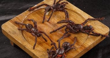 العناكب المقلية في كمبوديا تقلى وتُقدَّم مقرمشة في بلدة سكون، وتعتبر من أشهر الوجبات السياحية المحلية ومصدرًا تقليديًا للبروتين.