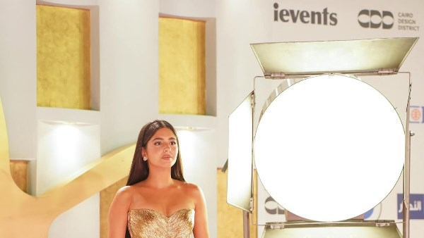مايان السيد تتألق بفستان ذهبي لافت أثناء عرض فيلمها «كولونيا» في مهرجان الجونة السينمائي