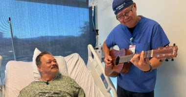 أجر الممرض رود سالايساي، العامل في وحدة الإنعاش بمستشفى جامعة كاليفورنيا في سان دييغو، تجربة لتسكين آلام المرضى بعد الجراحة عبر الغناء وعزف الجيتار.