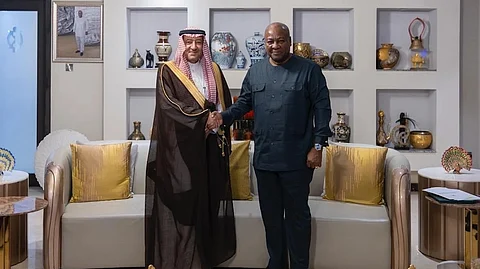 استقبل فخامة الرئيس جون دراماني مهاما، رئيس جمهورية غانا، مساء أمس في العاصمة أكرا، نائب وزير الخارجية المهندس وليد بن عبدالكريم الخريجي، وذلك خلال زيارته الرسمية للبلاد.